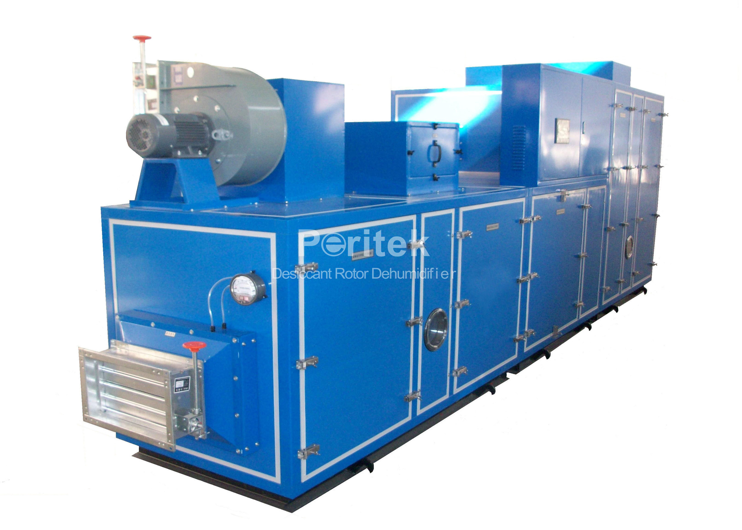 The core component of rotary dehumidifier is the 8-16 hour spin in turn densely cellular Conde desiccant wheel. The desiccant wheel on both sides by high-performance silicon fluorine rubber seals along the entire surface of the radial will be divided into 270 ° of the treatment area and 90 ° of the regeneration zone, when the moist air comes into the processing area, the air moisture in the desiccant wheel was adsorbed into dry air, dry air meet the need of dry place or gas production process